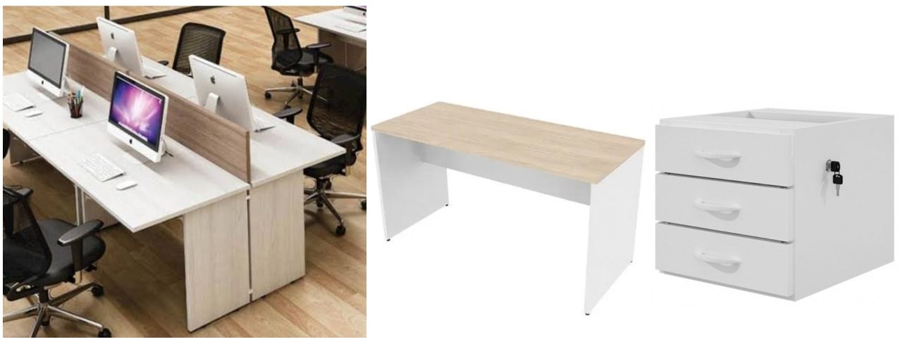Mesa reta com gaveteiro fixo - 3 gavetas
