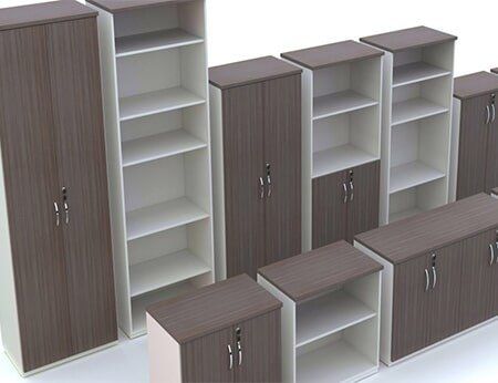 Armários confeccionados em MDP/MDF de 18 ou 25mm, estão disponíveis em várias cores e configurações.